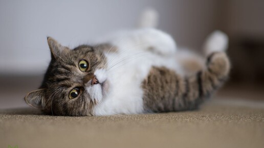 Почему кот лежит на спине?