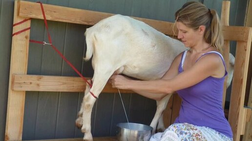 Что делать если коза не стоит спокойно на дойке? В первую очередь убедиться, что нет мастита. Дальше можно использовать такие способы : Способ 1. Этот метод подходит более-менее спокойным козам, которые просто любят ходить при дойке, также если нужно подоить козу на поле, а она не стоит и привязать некуда. Мягкой верёвкой фиксировать переднюю ногу козы за ошейник, так, чтобы нога была согнута, но без причинения боли животному-коза не должна удавливаться и нога не притянута к ушам. Способ 2...