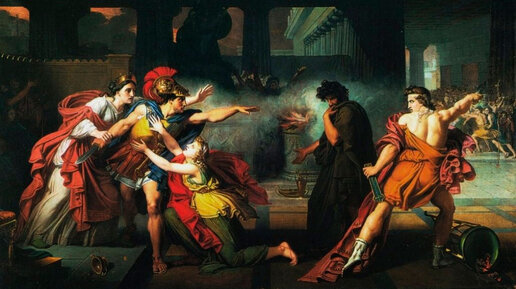 Когда несчастный царь Фив Эдип узнал, что является убийцей отца и мужем собственной матери, ослепил себя, оставил Фивы и отправился скитаться по чужим землям. Хорошо еще, что с ним изгнание разделила дочь Антигона. А то бы совсем пропал слепец. И остались Фивы без царя. Правда, у Эдипа были наследники. Два сына - Полиник и Этеокл. Наследника два, а трон один. Кому править? Решили братья по очереди править. А чтобы выяснить, кто первым на трон взойдет, жребий бросили. Выпало первым быть Этеоклу....