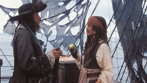 Пираты Карибского моря проклятие черной жемчужины-первая часть о похождениях авантюриста капитана Джека Воробья вышла в свет в 2003 году. С тех пор, этот отличный фильм пересмотрен много раз, но с каждым разом обращаешь внимание, на множество вещей, которые просто не возможно ни как объяснить. Я постараюсь не касаться таких киноляпов как ковбой в кадре, что бутылка то есть на столе, то нет, появившееся при смерти Барбосы яблоко в руках, хотя секунду назад он разрывал рубаху обоими руками и прочее...