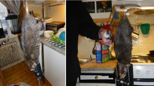Продолжаю исследовать размеры крыс. Зарубежные источники не меньше нашего любят истории о гигантских грызунах: Однажды житель шведской деревни Солне кот Енок Бенгтссон-Корсос перестал заходить на кухню даже ради еды. Его люди разведали обстановку в помещении и выяснили, что причиной странного поведения шерстяного стала гигантская крыса, которая прогрызла дерево и бетон, чтобы проникнуть в дом. Против грызуна установили три промышленные мышеловки, одна из которых в итоге и защёлкнулась на шее крысы...