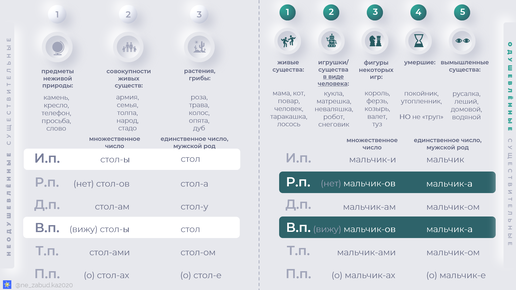 Одушевлённость-неодушевлённость существительных. Только не нужно кидать в меня тапками:)