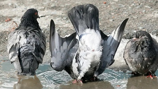 Зачем голубям купаться в лужах? 👇👇👇
