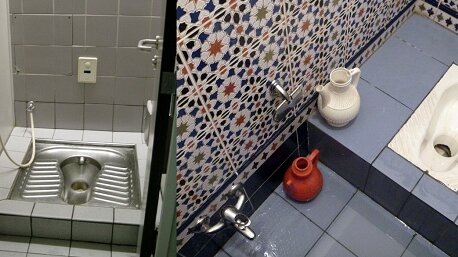 И как правильно справлять нужду по исламским канонам? Почему левая рука в исламских странах считается грязной? Поскольку арабы исповедуют ислам, то у них есть специальный этикет уединения – правила поведения в туалете. Во-первых, справлять свою нужду человек должен в дали от посторонних глаз как малую, так и большую. Что на самом деле логично, кому приятно на этот процесс смотреть. Хотя и России, и, например, в Китае есть туалеты, где в кабинках нет дверей. Согласно правилам шариата, входить в уборную нужно с левой ноги, при этом перед входом и выходом нужно прочитать специальную мольбу...