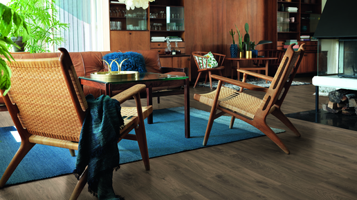 Предпочтительный тип покрытия: подходит и ламинат, и линолеум. Ламинат красивее, лучше имитирует натуральные материалы. Линолеум дешевле и более прост в монтаже: не нужно покупать электроинструменты для подрезки и укладки. В гостиной напольное покрытие не будет постоянно контактировать с водой, и здесь нет резких перепадов температуры. Поэтому чаще всего выбор зависит от двух факторов — эстетики и стоимости. Эстетика. Ламинат хорошо имитирует природные материалы — натуральное дерево, камень. Линолеум не такой красивый, он хуже передает естественные фактуры...