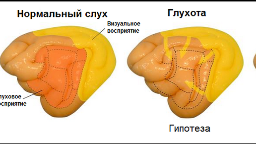 Исследования показали, что неиспользованные клетки мозга участвуют в улучшении зрения. Мозг очень эффективен, и он не позволит этой огромной территории, которая контролирует слух, не выполнять никаких функций, - объясняет руководитель исследования Стивен Ломбер из Канадского университета. Из этого получается, что другие чувства, которые помогают человеку воспринимать окружающий мир, займутся колонизацией дополнительных отделов мозга. Для подтверждения этой гипотезы, исследователи провели эксперименты с глухими кошками и раскрывали как же работает мозг в таких случаях...