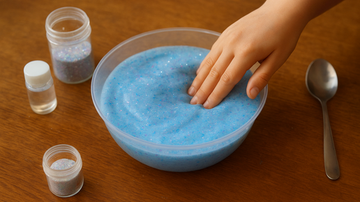 Лизун из трёх ингредиентов: безопасно, просто и с блёстками.