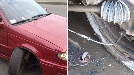 Вылетела шаровая опора переднего колеса и Рено Логан сломался