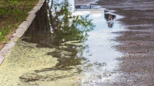 Почему в лужах желтый налет?