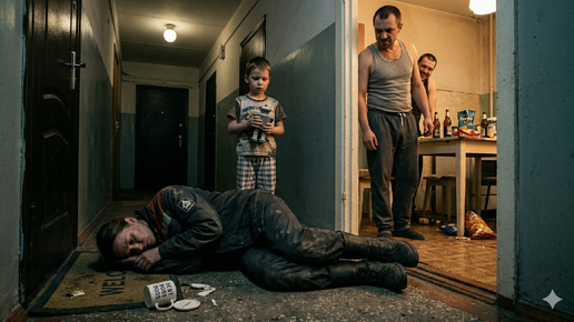 — Папа, а почему мама спит на холодном полу в коридоре? — громко спросил Матвей. Сын стоял в дверях детской, прижимая к животу облезлого пластмассового робота. В прихожей пахло дешёвым пивом, солёной рыбой и чем-то острым, от чего у меня в носу предательски зачесалось. Я лежала щекой на жёстком ворсе коврика. Ворс был колючий, пах пылью и старой обувью, но мне было всё равно. Мои ноги в тяжёлых ботинках с железным подноском весили по тонне каждая. На складе сегодня была инвентаризация металлопроката...