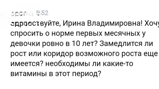Здравствуйте! Очень частый вопрос от родителей: «Первые месячные у девочки появились ровно в 10 лет. Это нормально? Не остановится ли рост? Нужно ли что-то дополнительно давать?» Давайте спокойно разберёмся. 10 лет — это вариант нормы Возраст начала менструаций у девочек варьирует достаточно широко. По клиническим рекомендациям нормой считается появление первых месячных (менархе) в промежутке от 9 до 14 лет. То есть 10 лет — абсолютно физиологичный возраст, при условии, что: до этого уже появились...