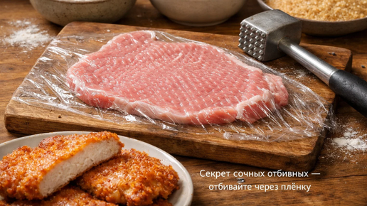 Приготовление отбивных из свинины кажется простым делом, но многие хозяйки сталкиваются с одной и той же проблемой. Мясо после жарки получается жёстким, сухим и совершенно не таким нежным, каким должно быть. Вроде бы все делаешь правильно: выбираешь хорошую свинину, отбиваешь её молотком, панируешь и жаришь. А результат разочаровывает. В чём же секрет идеальных отбивных, которые буквально тают во рту? Оказывается, проблема кроется в самом процессе отбивания. Большинство людей кладут кусок мяса прямо на разделочную доску и начинают стучать по нему молотком...