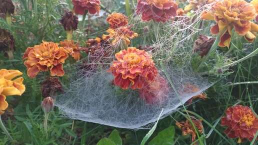 Начался сентябрь. Погода стоит на редкость ровная и теплая. Вышла в туманное утро на улицу и ахнула! Кусты и трава обильно украшены (по-другому не скажешь) паутиной. Почему осенью всегда так много паутины? Речь идет не про летящие по воздуху паутинки бабьего лета, на которых расселяется паучья молодь. Хотя это тоже очень интересно. Паучата размером с половинку буквы"о", а то и с точку, прикрепляют конец паутинки к чему-либо твердому и начинают прясть длинную нить. Потом они возвращаются к основанию, перекусывают паутинку, и ветер уносит их прочь...