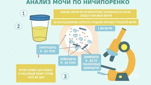 Анализ мочи по Нечипоренко. Пробу по Нечипоренко анализируют на полуавтоматическом лабораторном оборудовании. То есть для подсчета клеток или веществ лаборанту требуется только вставить пробирку внутрь анализатора. Прибор произведет исчисления сам. Метод применяют при: Несмотря на то, что для проведения исследования необходим 1 мл жидкости, для анализа человек должен собрать около 20 мл от количества мочи. После получения образца врач-лаборант перемешивает его, чтобы клетки и вещества не выпали в осадок, отливает 1 мл урины в небольшую пластиковую пробирку...