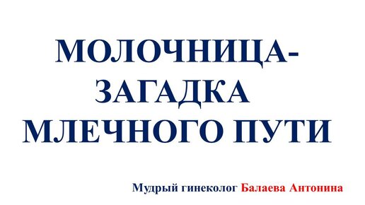 МОЛОЧНИЦА -ЗАГАДКА МЛЕЧНОГО ПУТИ