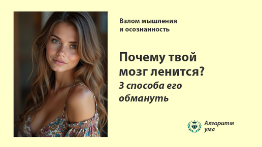 Привет, друзья! Сегодня поговорим о том, почему наш мозг иногда ведет себя как настоящий лентяй. Да-да, тот самый орган, который должен быть нашим главным союзником в достижении целей, иногда саботирует наши усилия. Почему так происходит? И, главное, как его обмануть? Давайте разбираться! Наш мозг — это мощный инструмент, но он запрограммирован на экономию энергии. С точки зрения эволюции, это было полезно: зачем тратить силы на что-то, что не гарантирует выживание? Но в современном мире, где нужно быть продуктивным, креативным и осознанным, эта «ленивая» программа часто мешает...