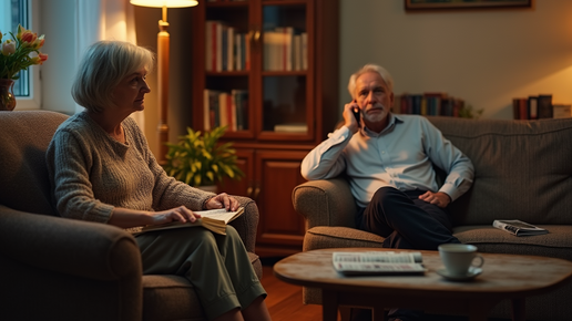 Вечер выдался на редкость тихим, один из тех осенних вечеров, когда время словно замедляет свой бег. За окном медленно опускались сумерки, окрашивая гостиную в мягкие лиловые тона, а на кухне все еще витал аромат яблочного пирога, который Ольга испекла днем для внуков. Вечерняя прохлада уже начинала пробираться сквозь неплотно прикрытую форточку, принося с собой запах опавших листьев и мокрого асфальта. Ольга, устроившись в своем любимом кресле с книгой, краем глаза наблюдала за мужем. Сергей, как обычно после работы, расположился на диване с телефоном...