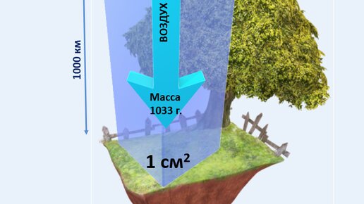 Почему у атмосферы есть давление? Нас окружает воздух. Он легкий, и мы его не ощущаем, поэтому может показаться, что он ничего не весит. На самом деле это не так. Поскольку воздух состоит из газов и примесей, то он имеет массу. А раз воздух имеет массу, значит, он оказывает давление на земную поверхность. На каждый квадратный сантиметр поверхности воздух оказывает давление в 1,033 кг — это масса столба атмосферного воздуха в основании площадью 1 см2 и высотой 1000 км. Человек не ощущает атмосферного давления, так как оно уравновешивается его внутренним давлением...