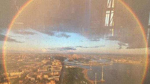 ☀️ Обычно мы видим радугу как дугу — но на самом деле это лишь часть окружности. Её центр находится на прямой, проходящей через Солнце и глаза наблюдателя (см. схему в комментариях). Из-за того, что чаще всего мы наблюдаем это явление с земли, нижняя часть радуги обычно оказывается «обрезана» земной поверхностью. 🌇 Но посмотрите на это фото, сделанное с высоты Лахта-центра (Санкт-Петербург) — с такой точки открывается совершенно другой ракурс...