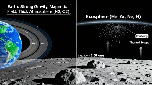 Глядя на Луну, мы видим мир одновременно знакомый и чужой. Её свет кажется близким, но её тишина абсолютна. Никакой ветер не шевелит её равнины. Облака не формируются, дождь не падает, звук не распространяется. Тени стоят неподвижно часами, а небо над ними остаётся чёрной пустотой даже в полдень. Луна — это мир без погоды, место, где время будто остановилось. Понимание того, почему она столь пуста, требует изучения тонкого баланса сил, позволяющих планетам вроде Земли удерживать атмосферу, и причин, по которым Луна не смогла...