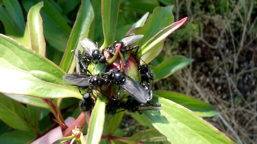 Чёрные необычные мухи роятся над пионами. Что это за напасть?