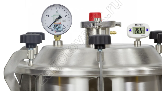 Давление и температура в домашнем автоклаве Домашний автоклав помогает хозяйкам облегчить процесс консервации в разы и сэкономить время. Приготовление происходит при давлении, которое превышает атмосферное, и температуре более 100°С. Это необходимо в целях обеззараживания консервов от патогенных микроорганизмов, обезопасит продукты и увеличит срок годности. В автоклаве во время стерилизации создается высокое давление, а поскольку агрегат плотно заперт, из него не может выйти ни жидкость, ни воздух...