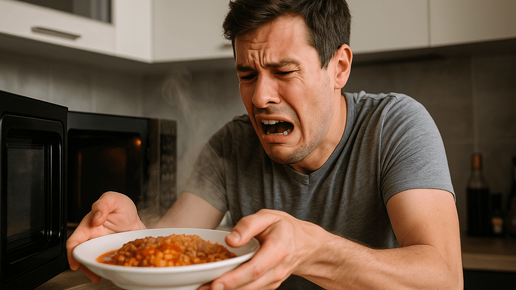 Многие замечали странный эффект: достаёшь блюдо из микроволновки, а тарелка раскалена так, что её невозможно держать, хотя сама еда едва тёплая. Кажется нелогичным, ведь именно еда должна нагреваться, а посуда служит всего лишь «подставкой». Но у этого явления есть простое и интересное объяснение, связанное с физикой и свойствами материалов. Микроволновая печь нагревает продукты с помощью электромагнитных волн частотой около 2,45 ГГц. Эти волны заставляют молекулы воды и жиров в еде быстро колебаться, и за счёт трения выделяется тепло...