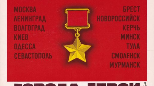 После Великой Отечественной войны 12 советских городов были удостоены звания "город-герой". Первыми городами-героями стали Ленинград, Сталинград, Севастополь и Одесса - это звание было присвоено им еще 1 мая 1945 года. В 1961 году к ним присоединился еще и Киев. Однако, официально звание "город-герой" было учреждено только 8 мая 1965 года - к 20-летию Победы. В указе Президиума Верховного Совета СССР звание "город-герой" определяется как "высшая степень отличия, которая присваивается городам, жители...