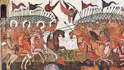 В экспозиции художественного музея города Ярославля выставлена большая деревянная православная икона XVII века с житием преподобного Сергия Радонежского. В нижней части иконы изображена легендарная Куликовская битва русского князя Дмитрия Донского с ханом Мамаем. Но русских и татар на этой иконе также не отличить. И те и другие в одинаковых золоченых доспехах и шлемах. Мало того, и татары и русские сражаются под одними и теми же боевыми хоругвями с изображением лика Спаса Нерукотворного. Нельзя...