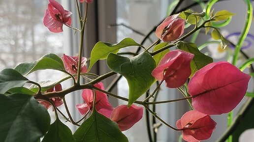 Если у домашнего растения БУГЕНВИЛЛИЯ 🌺 не формируются соцветия, это говорит об ошибках в условиях содержания . 1 ошибка и самая главная - нехватка солнечного света и тепла. Растение, которое родом из тропических лесов юга Бразилии, нуждается в таких же условиях содержания . То есть солнце ☀️, тепло и влажность . Я уже писала, что моя красавица стоит на южном окне в большой комнате и поэтому ей достаточно освещения . У меня такой проблемы не было. Спасибо ей, что продолжает меня радовать и удивлять своим прекрасным цветением...