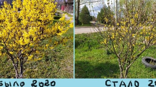 Несколько последних лет в садовых магазинах продавались саженцы этого декоративного кустарника. И теперь садоводы спрашивают: «Почему не цветет форзиция? Что я делаю не так?». Еще прошлой весной я писала, что форзиция может вести себя странно. На верхнем фото в статье видно, что в 2020-м году куст прекрасно цвел, но в 2021-м было весьма скудное цветение. И все мои читатели тогда просили: «А покажите, пожалуйста, как этот кустик будет выглядеть еще через год?». Показываю. Вот так: Получается, что форзиция шикарно цветет не каждый год, а через год...