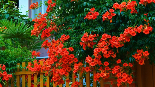 Кампсис - неприхотливый кустарник, цветущий все лето