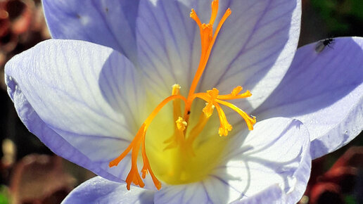 Нет, конечно, потому что цветут у меня сейчас осенние крокусы. В конце сентября я купила три разных сорта, один из них свой первый цветок явил моему взору в середине октября, цветёт он и на сегодняшний день, так как оказалось, что из некоторых луковиц после увядания первого бутона, появлялся второй и таким образом цветение длится уже почти месяц. Сильный ливень за это время был всего один раз, после него цветы расквасились, все остальные погодные явления этот сорт не замечает, цветёт и цветёт. За это время я его подробно рассмотрела и запомнила, сорт Зонатус (Crocus kotschyanus Zonatus)...