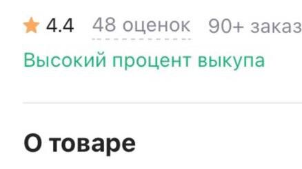 И еще одна плашка ⚡️ Практически ежедневно WB вносит изменения в свой интерфейс. На этот раз они коснулись клиентского сайта. Теперь в карточках товара, помимо рейтинга, количества оценок и заказов, может отображаться и новая плашка «высокий процент выкупа». Она появляется только на артикулах с самым высоким процентом выкупа (не менее 0,1 выше среднего) в каждой категории. Значок дает покупателям понять, что товар качественный, соответствует заявленным характеристикам и приходит без брака и повреждений...