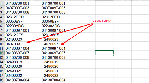 Очень частая ситуация, когда у нас есть какой-то номер в списке. который начинается с нуля, но при копировании на лист Эксель эксель воспринимает формат данных как числовой и "съедает" нолик (или даже нолики). Например, вот такой список 1. В принципе, проблема может решаться формулой. Переводим ячейки, в которые надо добавить нолики, в текстовой формат. Если нам надо просто вставить нолики, то формула будет следующая: ="0"&C10, если же надо поставить условием определенную длину. то =IF(LEN(C8)<8;"0"&C8;C8)...