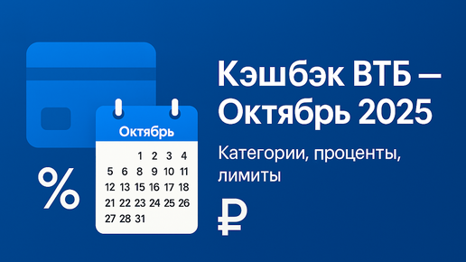 Кэшбэк ВТБ в октябре 2025: лучшие категории, проценты, лимиты и как получить максимум