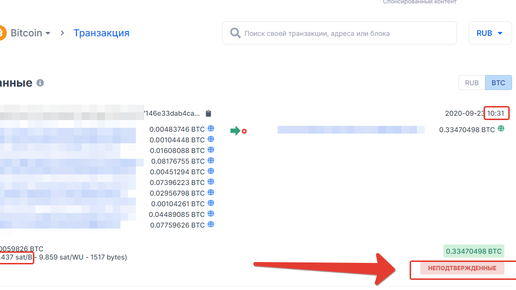 "Зависла" транзакция при переводе биткоинов, почему?