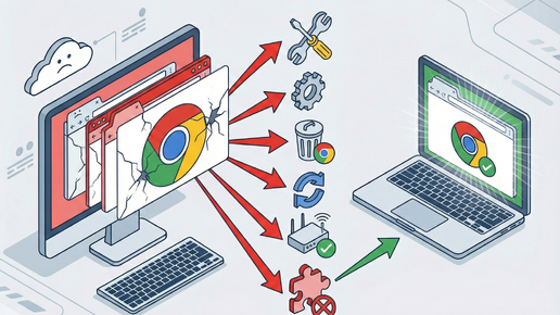 Больше новостей об IT в Telegram канале «Код Дурова» Google Chrome давно перестал быть просто браузером — через него проходят рабочие документы, почта, видеоконференции, банкинг, развлечения и учёба. Когда Chrome внезапно отказывается запускаться, начинает тормозить или перестаёт загружать страницы, это фактически парализует цифровую жизнь. В этой статье — системный подход к решению проблем: сначала диагностика (определяем тип сбоя), затем исправление по нарастающей — от простых действий к радикальным...