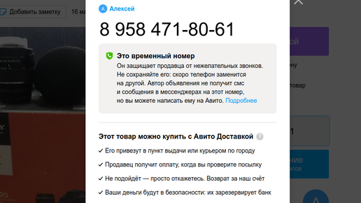На площадке для размещения объявлений Авито мобильные номера продавцов изначально недоступны для просмотра. На странице они зашифрованы (в формате 8-914-ХХХ-ХХ-ХХ), а после нажатия на действие «Показать телефон» придется войти в свой аккаунт. Но даже после этого покупатель не получит реальный номер продавца — вместо него Авито размещает временные номера, которые периодически меняются. Многие считают такую систему недостатком — покупателям труднее связаться с продавцом, а владельцы объявлений получают меньше откликов, так как большинству проще позвонить, чем писать в чате Авито и ждать ответа...