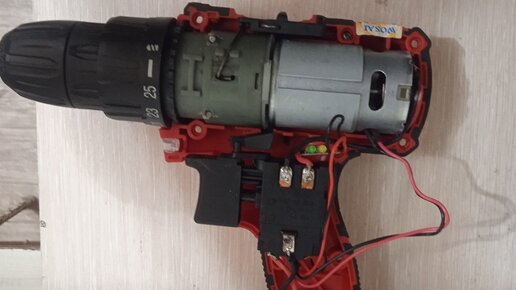 Пришло время разобрать новый шуруповерт, который проработал меньше часа и сдох. Я самонадеянно был уверен на 200%, что точно знаю причину неисправности: мол точно сгорел некачественный регулятор оборотов. Начинаю разбирать. Половинки корпуса шуруповерта стянуты достаточно надежно-на десять саморезов. Открутив все саморезы, переворачиваем шурик и разделяем половинки корпуса. В таком положении мотор и регулятор остаются на нижней половинке. В электрической схеме шуруповерта есть еще светодиод подсветки, провода которого уходят внутрь регулятора, т...
