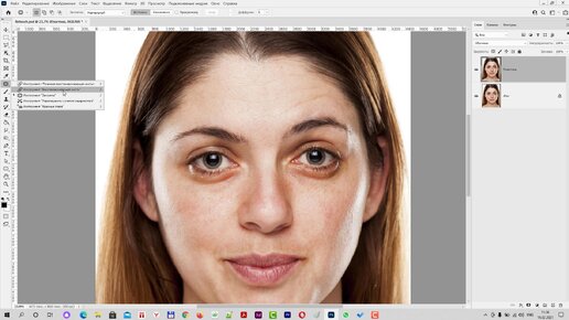 Восстанавливающая кисть в Фотошоп. Ретушь портрета при помощи восстанавливающей кисти. Часть 5.