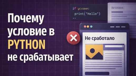 Скажу сразу - это один из самых частых моментов у новичков. Вроде и код написан, и ошибок нет, но условие просто… не выполняется. И в голове сразу мысль: «Я же всё сделал правильно. Почему оно не работает?» На самом деле в большинстве случаев Python работает идеально, просто условие вычисляется не так, как вы ожидаете. Python не понимает смысл так, как его понимает человек. Он вычисляет результат по определенной логике. Когда мы пишем условие, может возникнуть состояние, когда мы пытаемся объяснить программе идею...