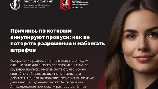 Оформление разрешения на въезд в столицу — важный этап для любого перевозчика. Получив грузовой пропуск, многие считают, что можно спокойно работать до окончания срока его действия. Однако на практике ситуация иная: даже действующий документ может быть отменён...