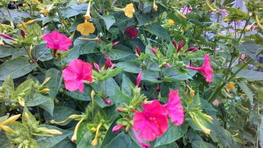 Отзыв сразу хочется начать с фото, потому что вместо тысячи слов о красоте мирабилиса (лат. Mirábilis jalápa), лучше один раз на него взглянуть. Кусты мирабилиса разрастаются очень пышно, цветут буйно, пахнут сильно. В общем, мирабилис заявляет о себе очень громко. Но ближе к ночи. Утром он все еще стоит с раскрытыми цветочками, поэтому люди, привыкшие рано ложиться спать и рано вставать, называют мирабилис "зорькой", акцентируя внимание не на ночном его цветении, а на утреннем. Еще одно название – ночная красавица – более точно характеризует это растение...