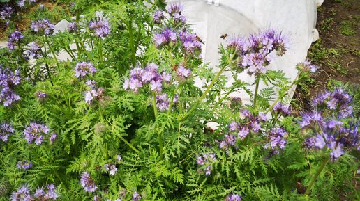 Фацелия - интересное растение из семейства Бурачниковые (Boraginaceae), которое прочно поселилось в моем саду. Впервые я познакомилась с фацелией на курсе "Природное земледелие". В уроке про сидераты настоятельно рекомендовали выращивать эту культуру как зеленое удобрение. Естественно, я приобрела 1 кг семян, благо они недорогие. В прошлом году первый раз я посеяла фацелию под зиму, в декабре. Засеяла всю площадь огорода. Поскольку меня не было в нужное время дома и погода была чрезмерно влажной, то к весне фацелия выросла огромной, пришлось ее скосить и запахать в грунт...
