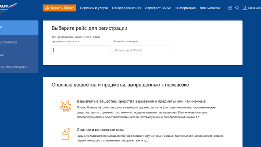 Онлайн регистрация на рейс Аэрофлот 2025 бесплатно по электронному билету
