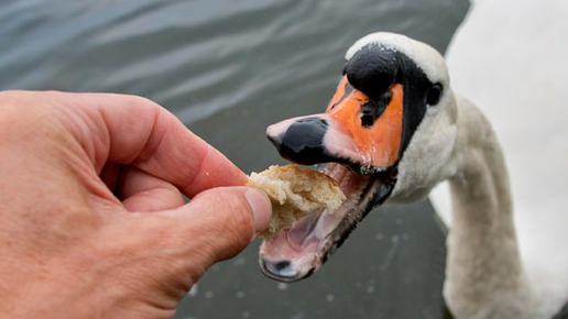 Кормление лебедей, хлебом нельзя, а люди кормят хлебом