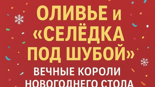 Новогодний стол в странах бывшего СССР невозможно представить без двух культовых салатов, которые из года в год уверенно делят пальму первенства. По данным опросов, самую большую любовь россиян завоевали сразу два блюда: легендарный Оливье и не менее любимая "Селёдка под шубой". Оба набрали одинаковое количество голосов, что неудивительно, ведь их секрет в простоте, доступности продуктов и идеальном сочетании вкусов. 👑 Оливье: От Элитного Деликатеса до Народной Классики Салат Оливье, часто называемый во многих странах "русским салатом", — это больше, чем просто блюдо...