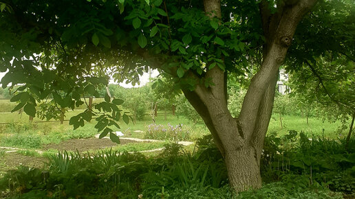 Есть ли жизнь под орехом? На эту тему любят поспорить не только садоводы и дачники. У кого-то под орехом не заводятся даже сорняки (вот же счастье привалило), а у кого-то посажены пионы (недавно вот узнала) и даже хорошо себя чувствуют. Моя садотворческая мысль до такого ещё не дошла, (чтобы поселить пион под сенью раскидистой кроны), но много чего другого у меня там живёт и здравствует. Делаю вывод - (основанный на собственном многолетнем практическом опыте) - под орехом жизнь есть! Под моим, и не одним, так уж точно! Орех у нас хозяин подворья, естественный шатёр и беседка...