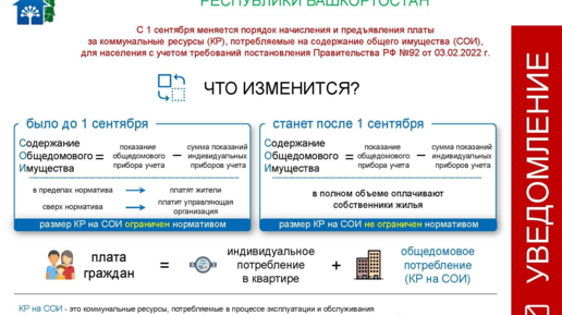 Многие жители города получили "расчетки" за жилищно-коммунальные услуги намного больше, чем в прежние месяца. Почему? Давайте разбираться. Часть 1. Год назад было принято Постановление Правительства РФ N 92 "О внесении изменений в некоторые акты Правительства Российской Федерации по вопросам предоставления коммунальных услуг и содержания общего имущества в многоквартирном доме" и вступило в силу 1 сентября 2022 года. Данное постановление утвердило новый порядок КР на СОИ. Я попробую объяснить все доходчиво...